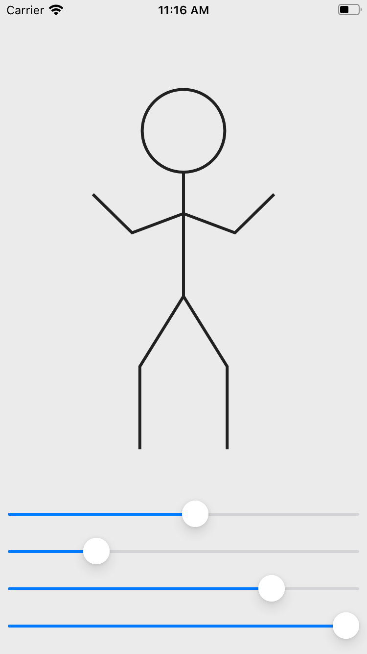 As I followed the Stanford course on iOS programming with Swift I got into drawing on storyboard and gesture recogniser. To use this features in real app I build two simple apps. FaceIt which used tap and swipe gestures to change mimic of a drawn face. And StickMan - this one is the first real life application of trigonometry functions for me :D. At the end I joined this two project to have StickMan with FaceIt head, but I couldn't find this project. But I was lucky enough to buid this two apps with some small changes and upgrade to Swift 4.0.
