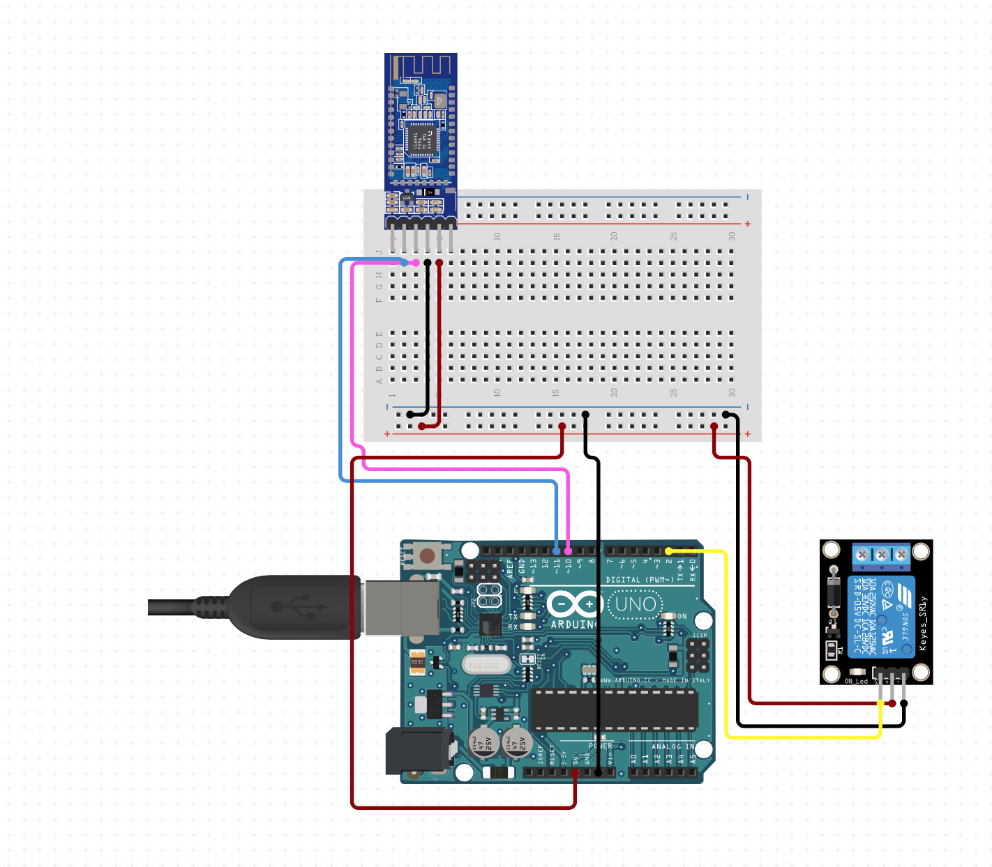 At that time a I also started my journey with micro-controllers so I wanted to connect this two passions to build something fun. I was complaining on having to stand up from bet to turn off my desk light at night (like an animal...) so I ended up with an idea to build a simple relay controlled light from the app. For this project I forked a HM-10 terminal app from github, I striped the whole app down to have only one big button at the screen... For the hardware part I used the Arduino Uno, HM-10 bluetooth module and some relay. I recreated the schematic at Circuito because I never soldered a proper prototype. I also couldn't build my swift project, because it missed some of the files. Archiving some of my old stuff is not an easy task...