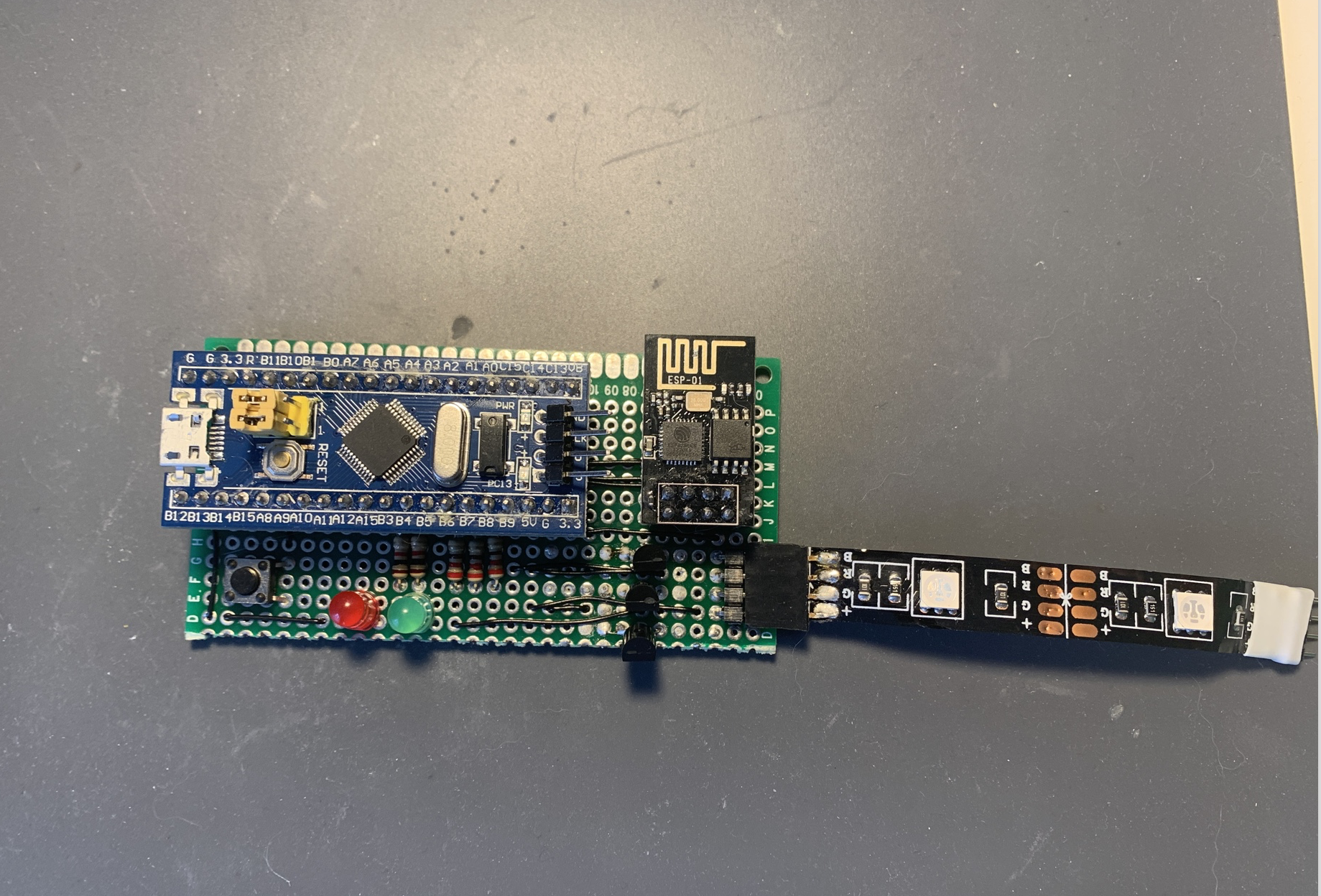 For the end-devices I used a STM-32 ยตC with ESP-01 Wi-Fi modules communicated through serial. One of the features that I liked about them was WPS for Wi-Fi authentication, so I did not have to build UI for it... In the end I have build three devices - led RGB light controller, smart switch for the wall plug and one temperature sensor. Besides PCB designs I also made the prober prototypes. In the end it was my biggest project yet, I have spend a lot of time on it and i think I am still very proud of what I have done. (Also writing the thesis was much more tiresome and frustrating for me). You can find all of the details in my thesis on Github (if you speak polish ๐).